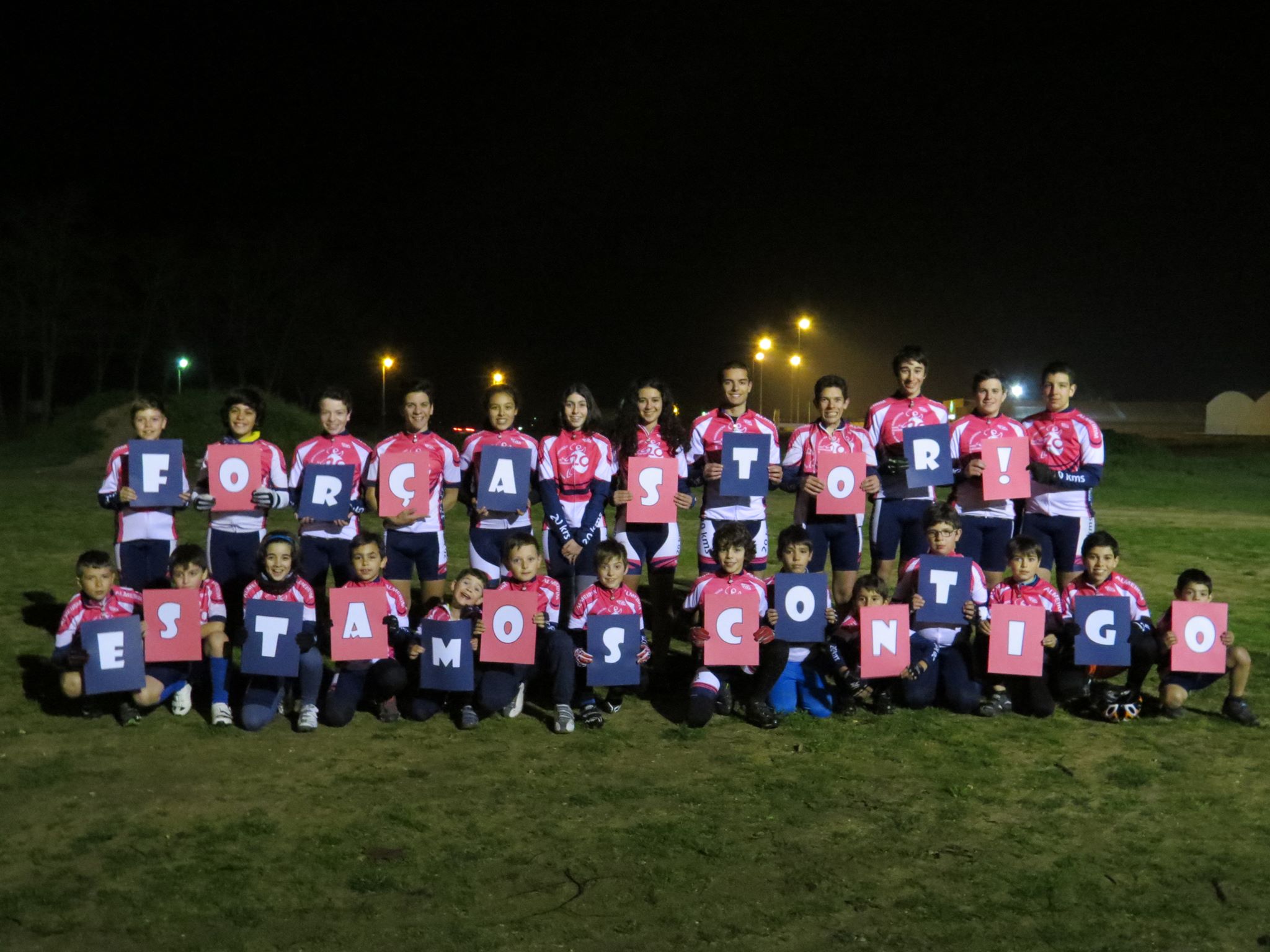 Os jovens produziram cartolinas com letras e todas juntas diziam: ” Força Stor. Estamos contigo”.