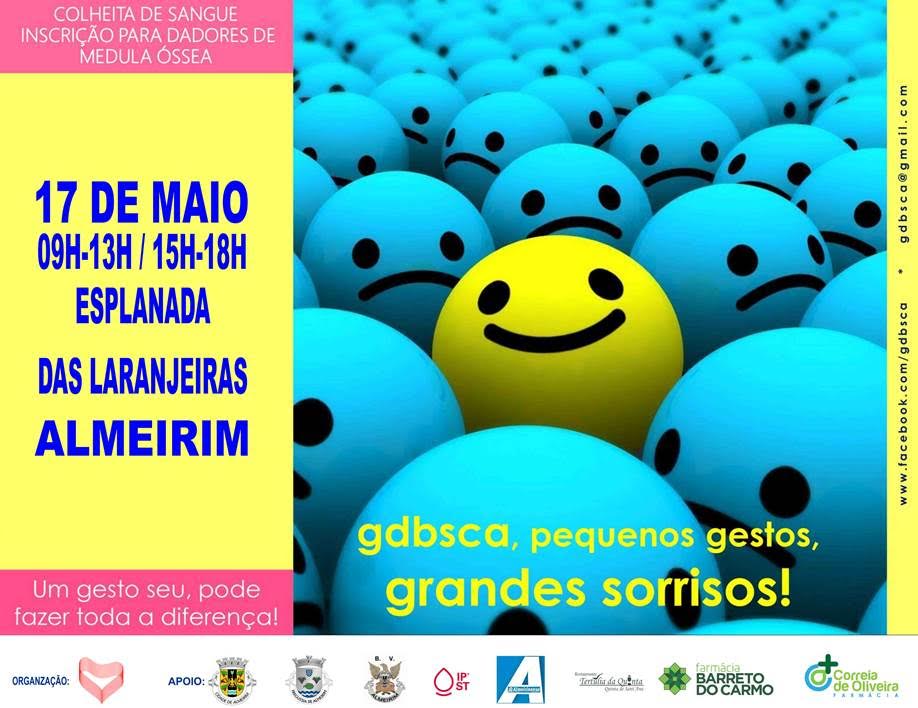 O Grupo de Dadores de Sangue de Almeirm organiza uma dádiva de sangue para dia 17 de maio.