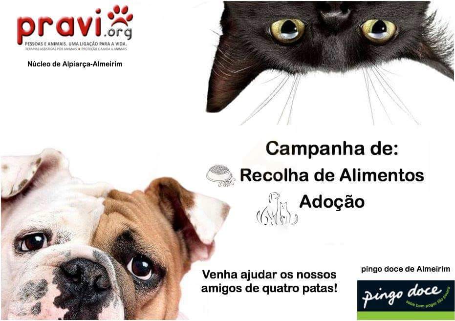 Nos dias 6 e 7 de outubro a PRAVI Núcleo de Alpiarça – Almeirim, vai estar pesente no Pingo Doce de Almeirim em campanha de recolha de alimentos (e outros bens) e vai ter animais para adoção.